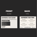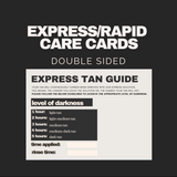 2. Rapid/Express Solution Tips : Our care card template includes essential information about post-tan care with a rapid solution, covering topics such as showering, moisturizing, clothing choices, and avoiding activities that may affect the tan's longevity.
