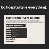 1. Time Guide: Information for your clients indicating how long to wait before showering. We include a space to write in their showered time based off their desired darkness level