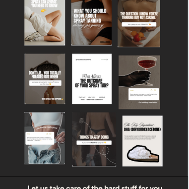 ✔ 100+ Customizable Instagram In-Feed Posts Includes a variety of graphics, quotes, educational tips, and more to help you engage your audience and promote your spray tan business.